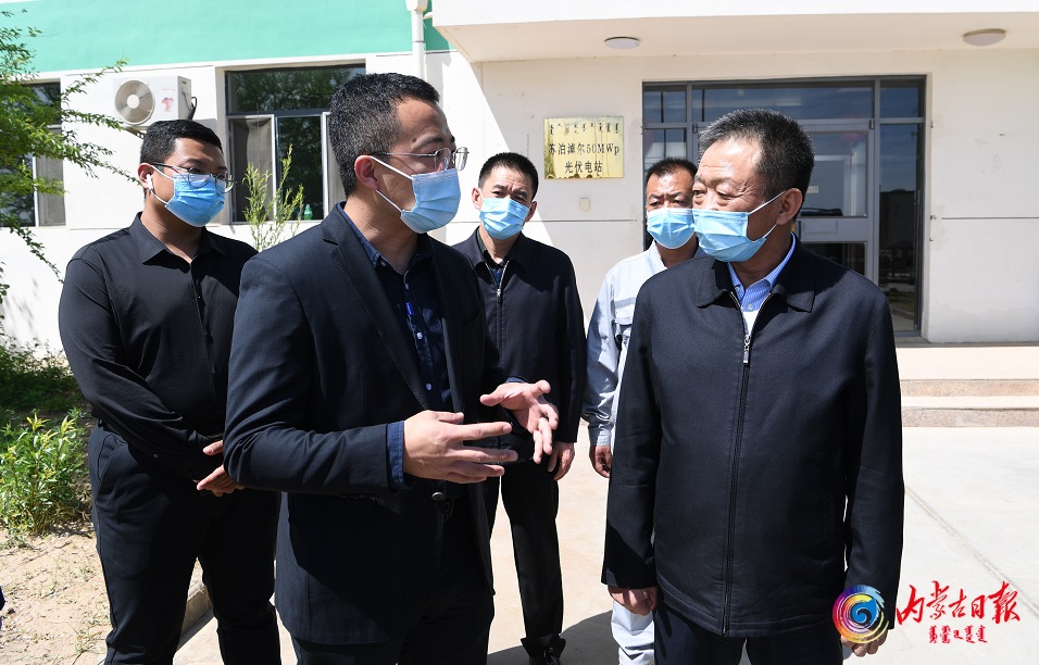 5月16日,自治區(qū)黨委書記孫紹騁在蘇泊淖爾光伏電站,調(diào)研新能源項(xiàng)目建設(shè)。內(nèi)蒙古日?qǐng)?bào)社融媒體記者 袁永紅 攝