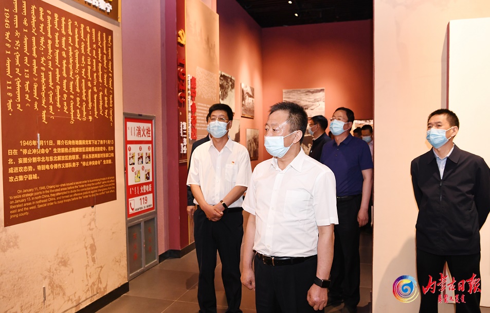 孫紹騁參觀集寧戰(zhàn)役紀(jì)念館,認(rèn)真聽取情況介紹。內(nèi)蒙古日報(bào)社融媒體記者袁永紅攝
