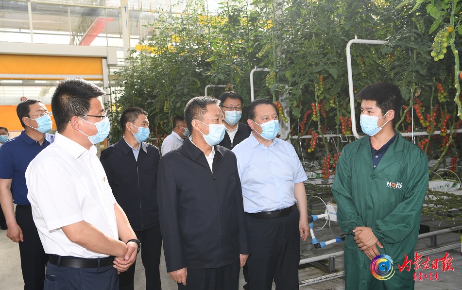 孫紹騁走進(jìn)宏?,F(xiàn)代農(nóng)業(yè)產(chǎn)業(yè)園無土栽培番茄智能化溫室,詳細(xì)了解土地流轉(zhuǎn)、產(chǎn)品銷售、項(xiàng)目建設(shè)及帶動(dòng)就業(yè)等情況。內(nèi)蒙古日報(bào)社融媒體記者袁永紅攝