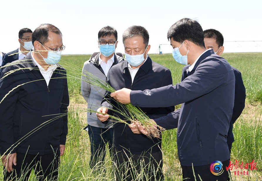 孫紹騁在羊草擴繁基地調(diào)研。內(nèi)蒙古日報社融媒體記者袁永紅攝