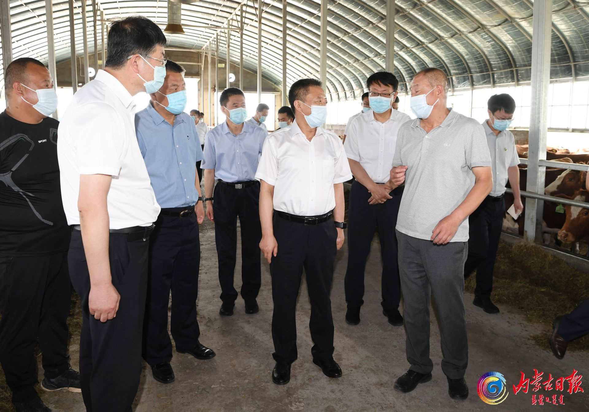7月4日,自治區(qū)黨委書記孫紹騁來(lái)到錫林郭勒盟錫林浩特市沃原良種肉牛繁育基地,了解肉牛產(chǎn)業(yè)發(fā)展情況。記者袁永紅攝
