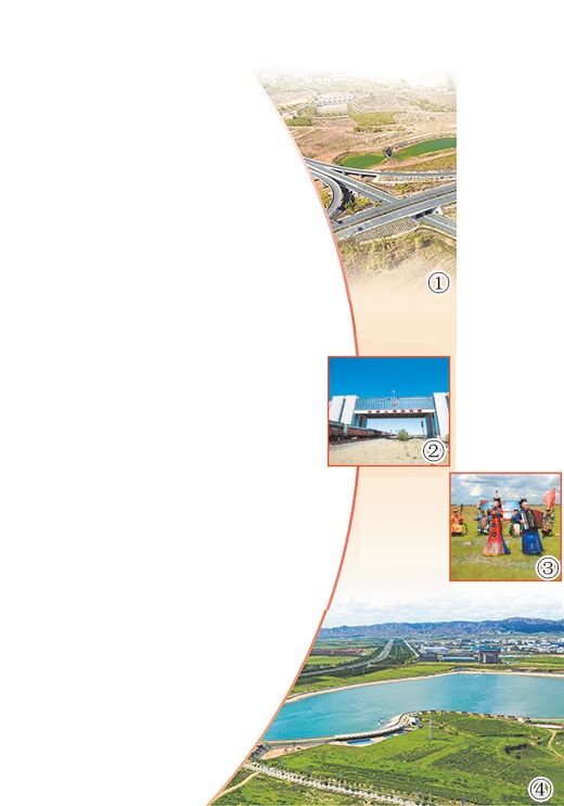 圖②:“二連號(hào)”中蒙寬軌集裝箱專列駛出內(nèi)蒙古自治區(qū)二連浩特國(guó)門,開往蒙古國(guó)烏蘭巴托。