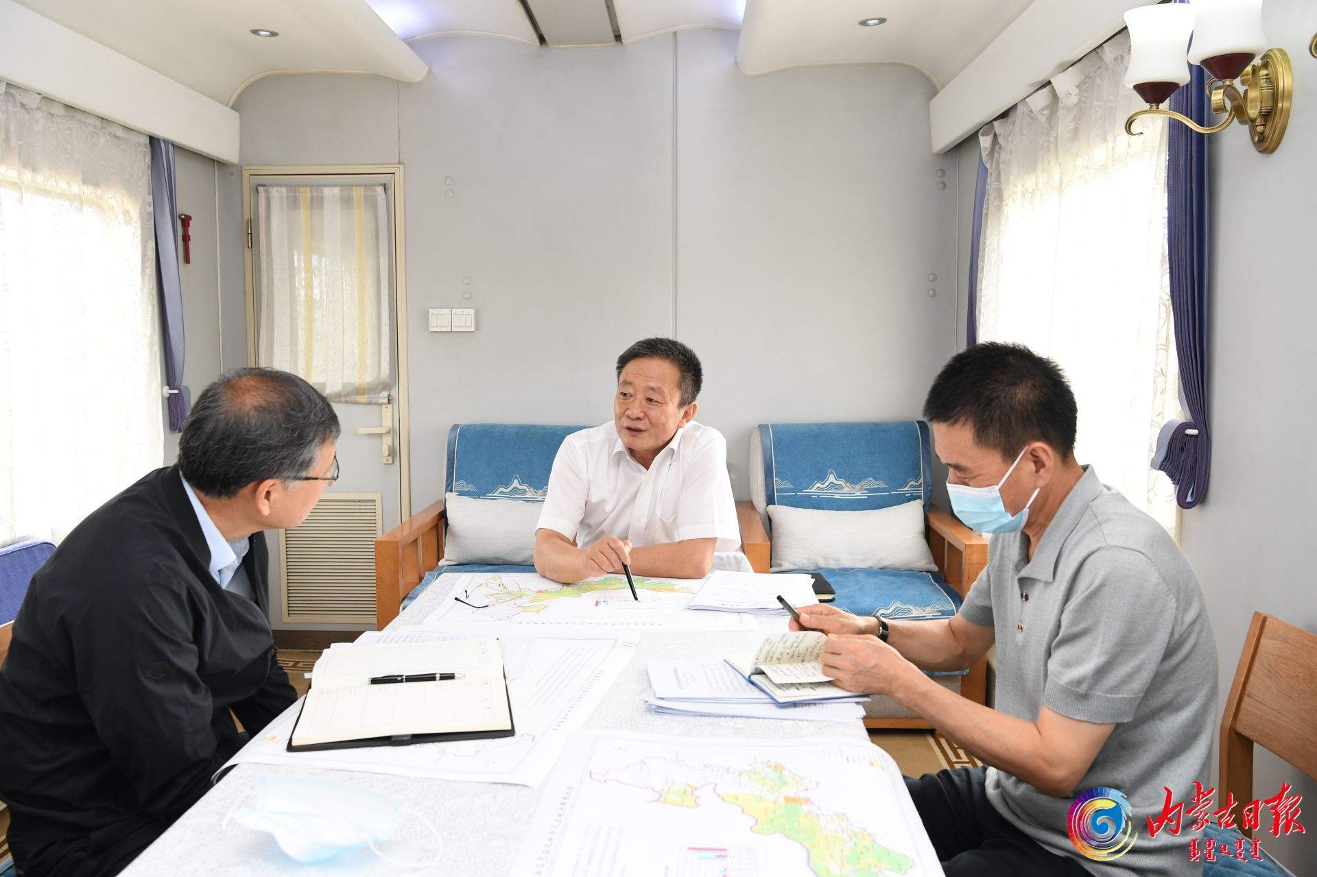 8月26日,自治區(qū)黨委書記孫紹騁在列車上認真聽取自治區(qū)有關部門關于全區(qū)防沙治沙工作情況匯報。內蒙古日報社融媒體記者袁永紅攝