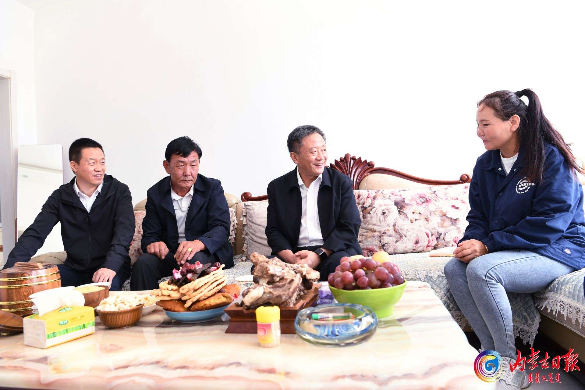 8月26日,自治區(qū)黨委書記孫紹騁來到鄂爾多斯市杭錦旗獨貴塔拉鎮(zhèn)道圖嘎查,親切看望治沙先進個人敖特更花。內蒙古日報社融媒體記者袁永紅攝