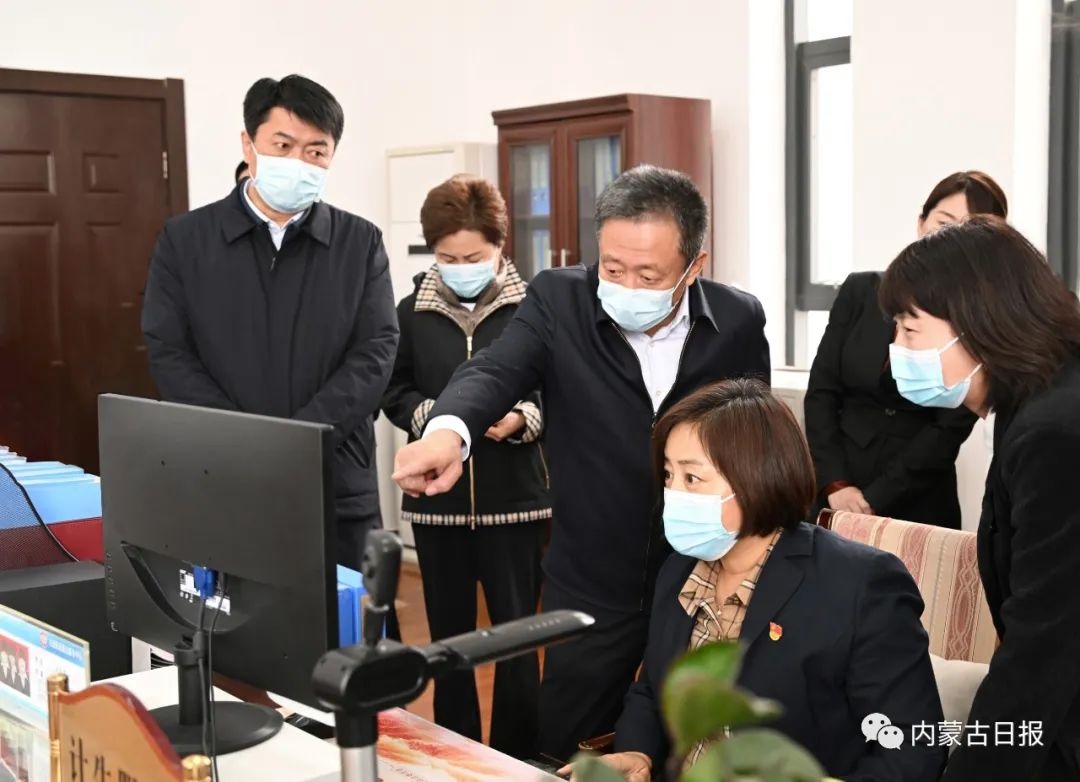 4月21日,孫紹騁在鄂爾多斯市東勝區(qū)天驕街道鐵西社區(qū)了解基層需要維護(hù)的系統(tǒng)平臺(tái)情況。內(nèi)蒙古日報(bào)社融媒體記者馬建荃攝