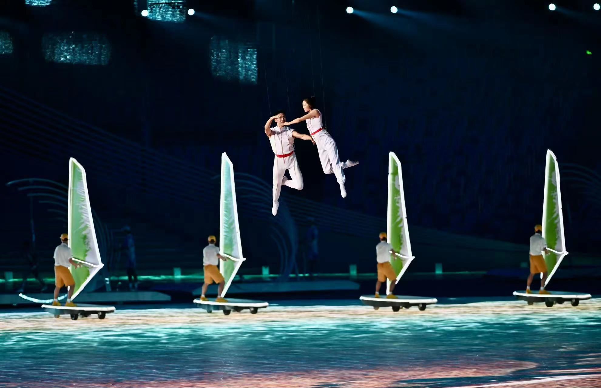 開幕式文藝表演以“潮起亞細(xì)亞”為總主題,分為《國風(fēng)雅韻》《錢塘潮涌》《攜手同行》三大篇章,寓意著新時代的中國正與亞洲、世界交融激蕩,像浪潮一樣奔涌向前。開幕式首次將3D雙威亞技術(shù)應(yīng)用于大型運(yùn)動場中,首次實(shí)現(xiàn)“數(shù)實(shí)融合”點(diǎn)火儀會開幕式在浙江省杭州市隆重舉行。開幕式文藝表演以“潮起亞細(xì)亞”為總主題,分為《國風(fēng)雅韻》《錢塘潮涌》《攜手同行》三大篇章,寓意著新時代的中國正與亞洲、世界交融激蕩,像浪潮一樣奔涌向前。開幕式首次將3D雙威亞技術(shù)應(yīng)用于大型運(yùn)動場中,首次實(shí)現(xiàn)“數(shù)實(shí)融合”點(diǎn)火儀式。本次亞運(yùn)會有來自亞洲45個國家和地區(qū)代表團(tuán)的1.2萬多名運(yùn)動員報名參賽,共設(shè)40個大項(xiàng)、61個分項(xiàng)、481個小項(xiàng),是史上規(guī)模最大、項(xiàng)目最多、覆蓋面最廣的一屆亞運(yùn)會。