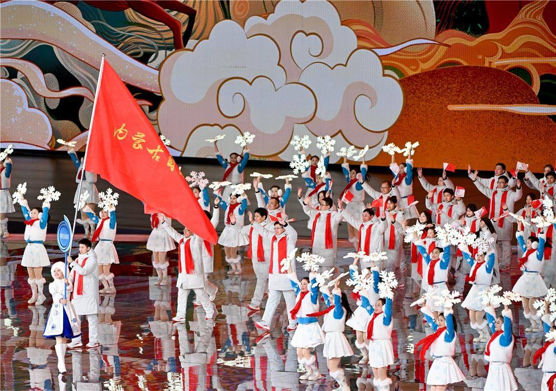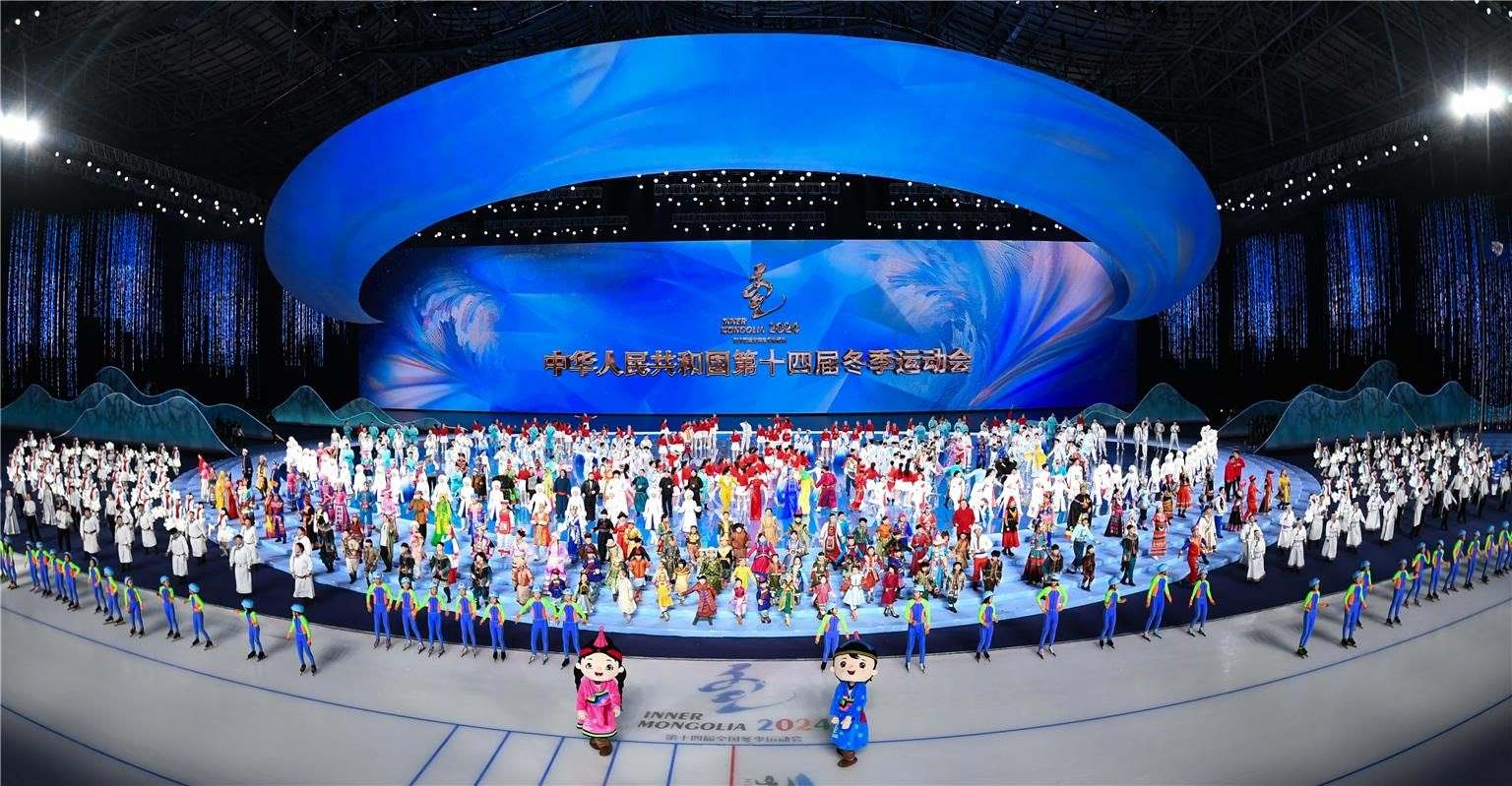 2月17日晚,第十四屆全國冬季運動會開幕式在內(nèi)蒙古自治區(qū)冰上運動訓練中心速滑館舉行。開幕式分為開幕儀式、文體展演兩大部分。