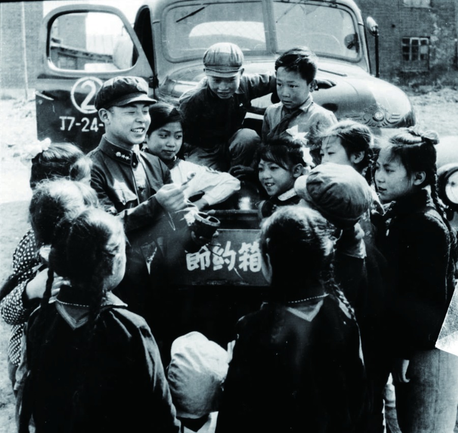 ↑雷鋒被聘為某小學(xué)的校外輔導(dǎo)員,他教育孩子們不要忘記艱苦奮斗的光榮傳統(tǒng)。
