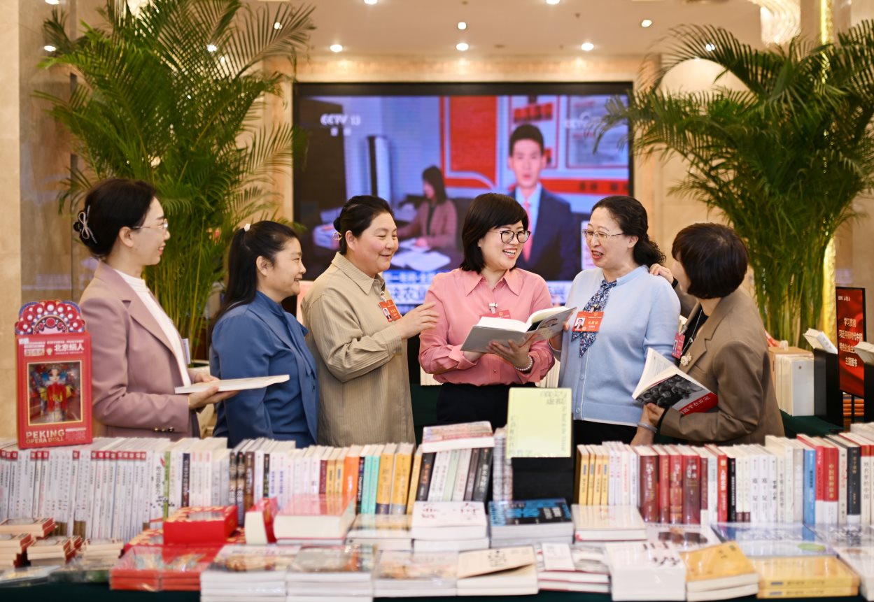 3月7日,參加十四屆全國人大二次會(huì)議的內(nèi)蒙古代表團(tuán)的女代表們在會(huì)議間隙來到駐地書吧,選購自己喜歡的書籍。大會(huì)開幕以來,她們圍繞我區(qū)經(jīng)濟(jì)建設(shè)、科技創(chuàng)新、鄉(xiāng)村振興等方面提建議、談感受,積極建言獻(xiàn)策,為奮力書寫中國式現(xiàn)代化內(nèi)蒙古新篇章貢獻(xiàn)力量。草原全媒記者馬建荃孟和朝魯攝
