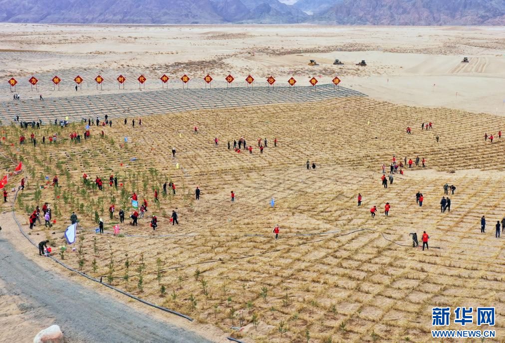 內蒙古黃河“幾字彎”地區(qū)開展植樹造林工作。新華社記者李云平 攝