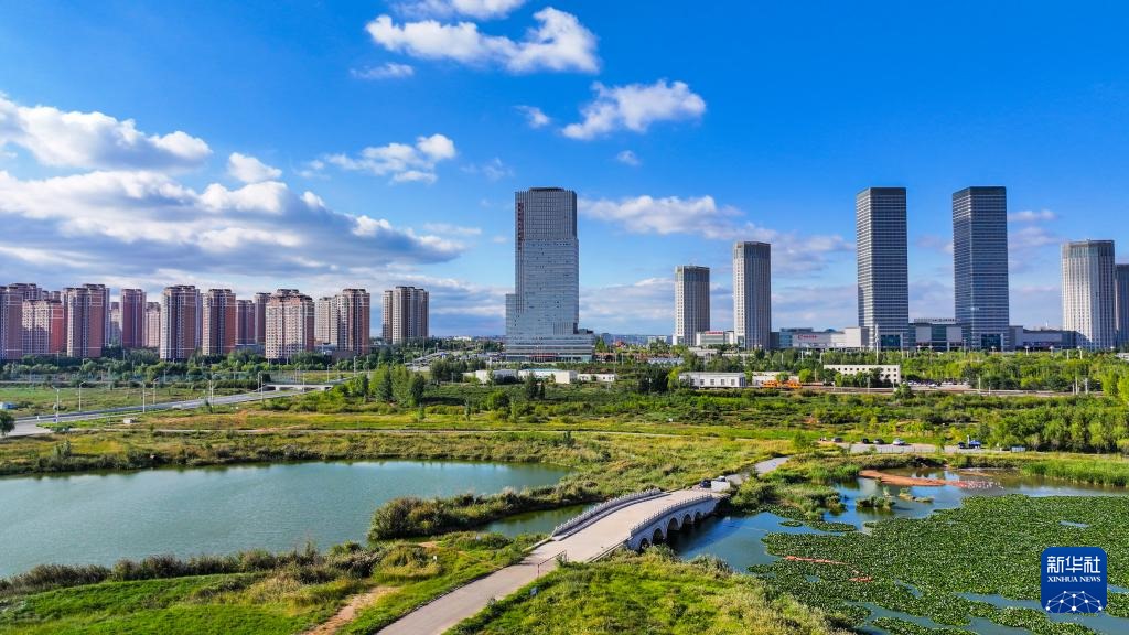 ??這是9月19日拍攝的鄂爾多斯市康巴什區(qū)一景(無人機照片)。