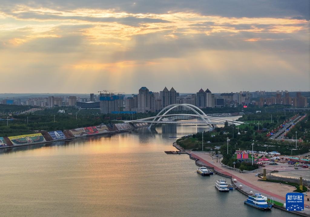 ???這是9月19日拍攝的鄂爾多斯市康巴什區(qū)中軸線(無人機照片)。