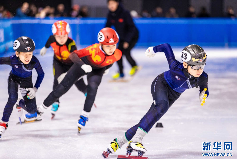 ??12月15日,參賽小選手在呼和浩特市冰雪運(yùn)動(dòng)系列活動(dòng)短道速滑公開(kāi)賽比賽中。新華網(wǎng)發(fā)(丁根厚 攝)