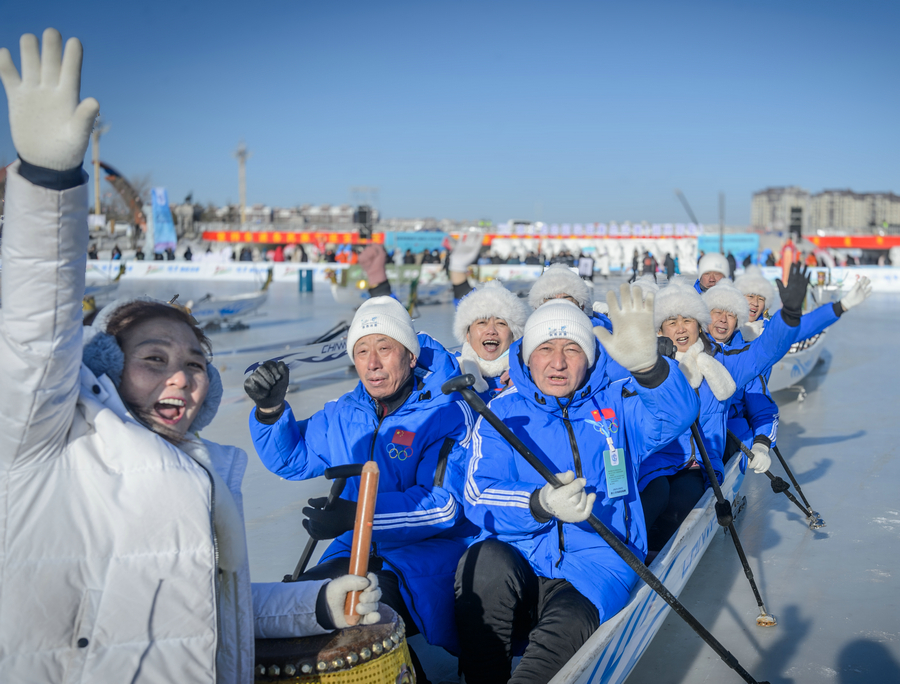 冰上龍舟作為傳統(tǒng)龍舟運動的創(chuàng)新變體,將場地移至冰面,船體保留了龍舟的基本構(gòu)造元素,同時底部裝有冰刀或滑輪以適應(yīng)冰面滑行。這項運動融合了競技性、團隊性與娛樂性,讓參與者在冰面上體驗風馳電掣的刺激,能夠極大地激發(fā)了人們的冰雪運動熱情。