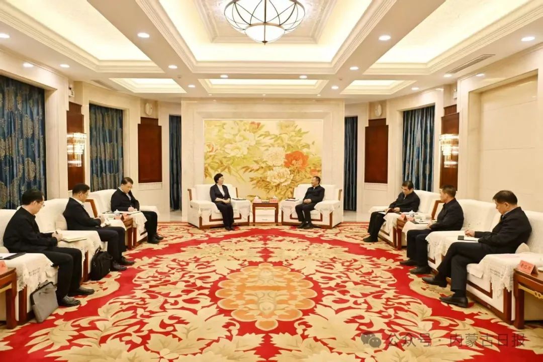 自治區(qū)領(lǐng)導(dǎo)丁繡峰、于立新、奇巴圖參加會見。(記者 李晗)