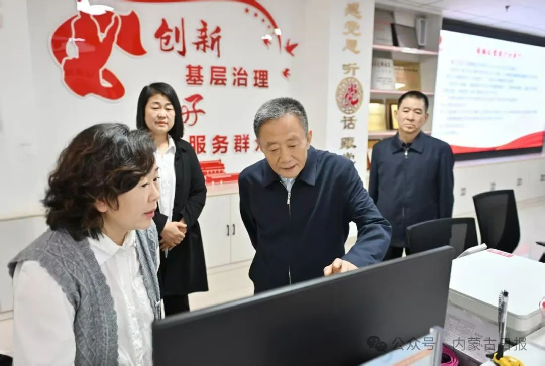 5月13日,自治區(qū)黨委書記孫紹騁走進(jìn)臨河區(qū)金川街道江林社區(qū)便民服務(wù)大廳和黨群服務(wù)中心,同社區(qū)工作人員深入交流,了解社區(qū)工作內(nèi)容和減負(fù)效果。草原云·內(nèi)蒙古新聞網(wǎng)記者 馬建兵 攝
