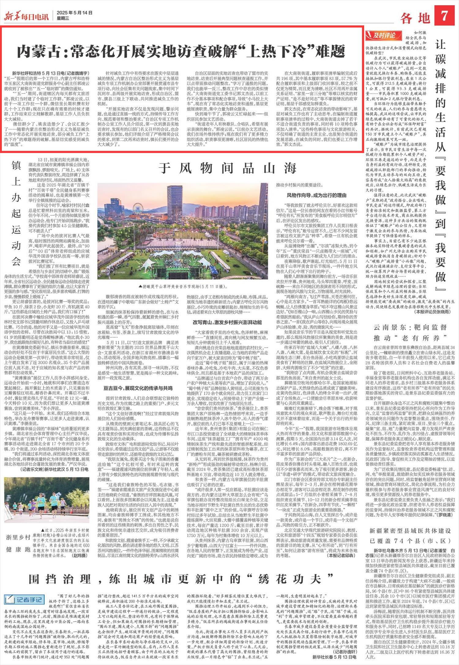 2025年5月14日《新華每日電訊》第7版刊發(fā)了《內(nèi)蒙古:常態(tài)化開展實地訪查破解“上熱下冷”難題》的文章,報道了內(nèi)蒙古自治區(qū)整治形式主義為基層減負(fù)專項工作機(jī)制辦公室部署開展貫通市縣專項行動,向社會征集有關(guān)問題線索,集中時間下沉到市、縣兩級開展實地訪查,形成自治區(qū)、盟市、旗縣三級上下聯(lián)動、共同推進(jìn)減負(fù)工作的機(jī)制。
