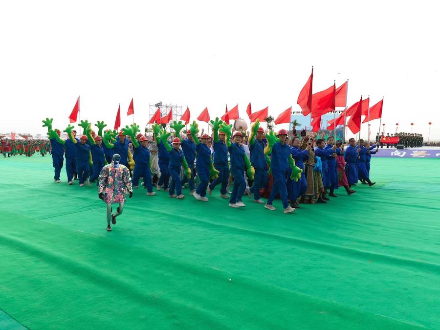 2025阿拉善那達(dá)慕開幕式上儀仗隊(duì)護(hù)送國(guó)旗走向場(chǎng)地