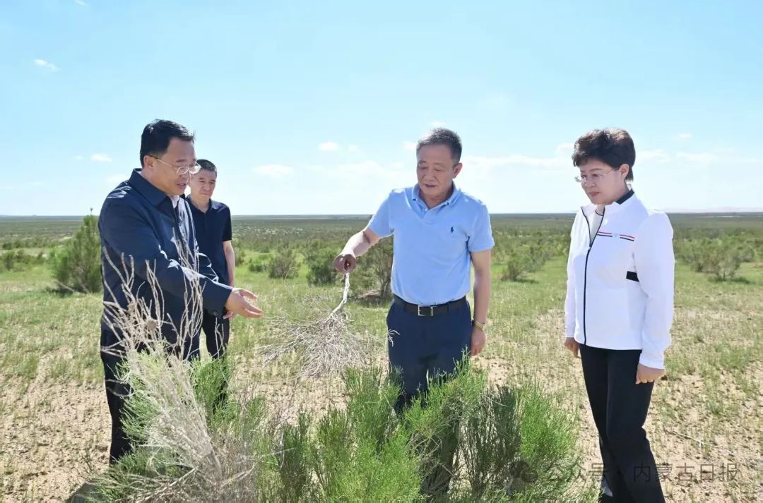 7月9日,自治區(qū)黨委書記孫紹騁來到“百萬畝”梭梭生態(tài)林基地宗別立項(xiàng)目區(qū),詳細(xì)了解已治理區(qū)域成效。草原云·內(nèi)蒙古新聞網(wǎng)記者 馬建兵 攝