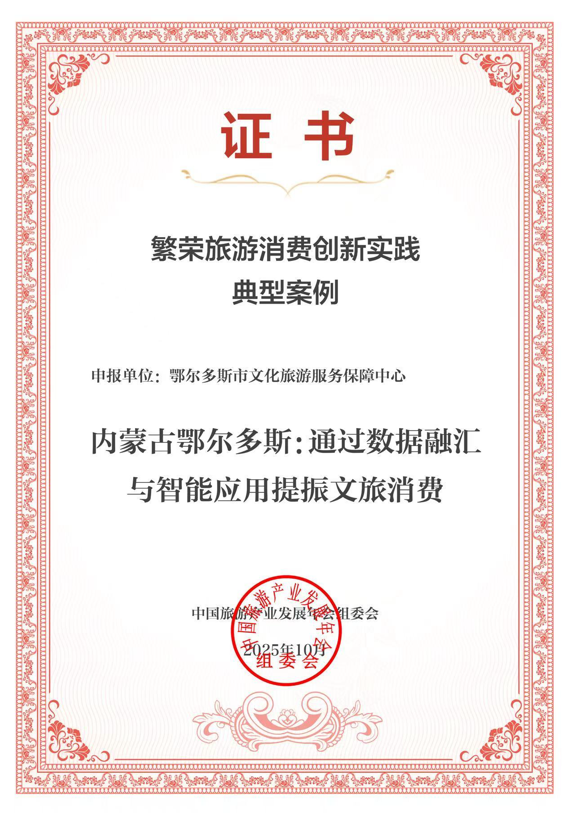 鄂爾多斯市“通過數據融匯與智能應用提振文旅消費”案例入選2025繁榮旅游消費創(chuàng)新實踐典型案例。