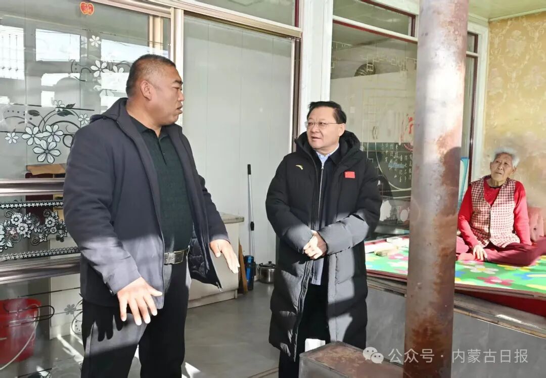 11月30日,自治區(qū)黨委書記王偉中到小獨(dú)立壩村受災(zāi)群眾家中了解情況。草原云·內(nèi)蒙古新聞網(wǎng)記者 馬建兵 攝