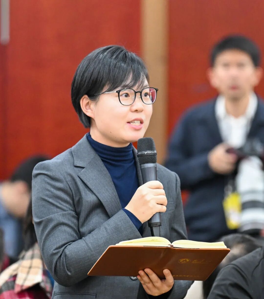 龔明珠代表回答經(jīng)濟(jì)日?qǐng)?bào)記者提問。