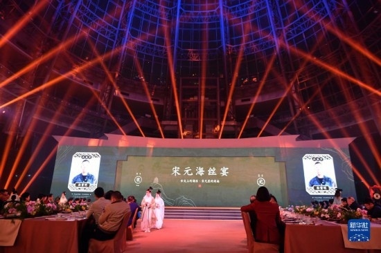 當(dāng)日,福建泉州石獅市舉辦“閩菜地標(biāo)美食城市”授牌暨“宋元海絲宴”推介儀式。“宋元海絲宴”以南宋福建泉州石獅籍美食家林洪著作《山家清供》為還原藍(lán)本,兼收閩南名菜,集山珍、海味于一席,將菜品、宴席與宋元器皿、場景、樂曲、詩詞等融合,展現(xiàn)宋元時期世界海洋商貿(mào)中心獨特的美食文化。新華社記者 魏培全 攝
