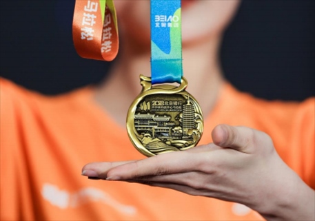 在新聞發(fā)布會(huì)上,賽事組委會(huì)還發(fā)布了本屆賽事的獎(jiǎng)牌和服裝。獎(jiǎng)牌名為“運(yùn)河逐夢(mèng)”,意為歡迎全國(guó)各地的跑友來(lái)北京城市副中心運(yùn)河畔發(fā)展創(chuàng)業(yè)、追逐夢(mèng)想。賽事服裝主色調(diào)橙色彰顯屬于馬拉松運(yùn)動(dòng)的青春活力,寓有馬到“橙”功之意。