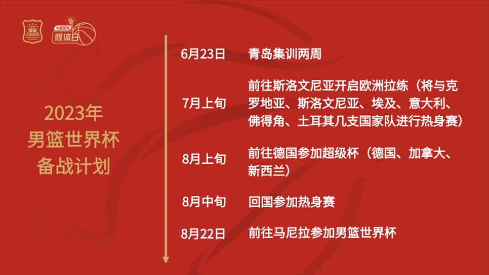 談到中國(guó)男籃備戰(zhàn)世界杯的具體規(guī)劃時(shí),徐濟(jì)成表示:“球隊(duì)將于6月23日在青島開(kāi)啟為期兩周的集訓(xùn);7月上旬前往斯洛文尼亞開(kāi)啟歐洲拉練,將與克羅地亞、斯洛文尼亞、埃及、意大利、佛得角、土耳其幾支國(guó)家隊(duì)進(jìn)行熱身賽;8月上旬前往德國(guó)參加超級(jí)杯,對(duì)手包括德國(guó)、加拿大、新西蘭;8月中旬回國(guó)參加1-2場(chǎng)熱身賽后,將前往馬尼拉參加男籃世界杯?!?/p>