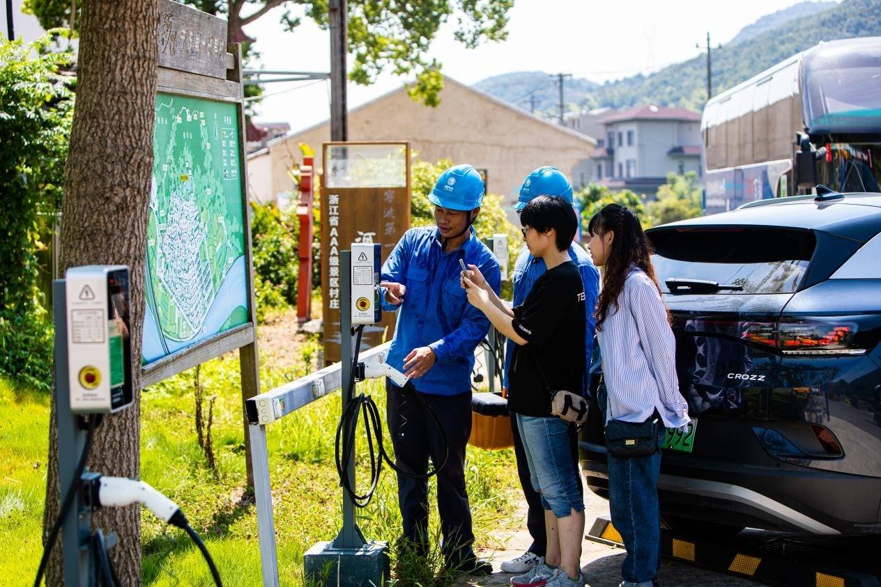國(guó)家電網(wǎng)浙江寧波供電公司員工為電動(dòng)車(chē)主提供現(xiàn)場(chǎng)充電指導(dǎo),引導(dǎo)往來(lái)車(chē)輛有序充電,為綠色旅行提供全方位服務(wù)。胡云杰/攝
