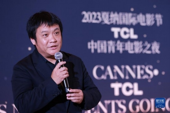 5月19日,在法國戛納,中國青年電影全球推廣計(jì)劃推廣大使、導(dǎo)演寧浩在“中國青年電影之夜”活動(dòng)上致辭。