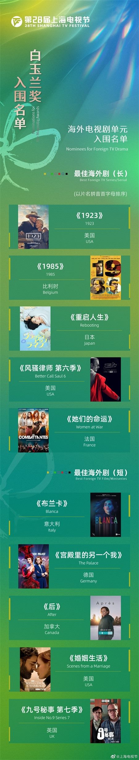 附:第28屆上海電視節(jié)白玉蘭獎入圍名單