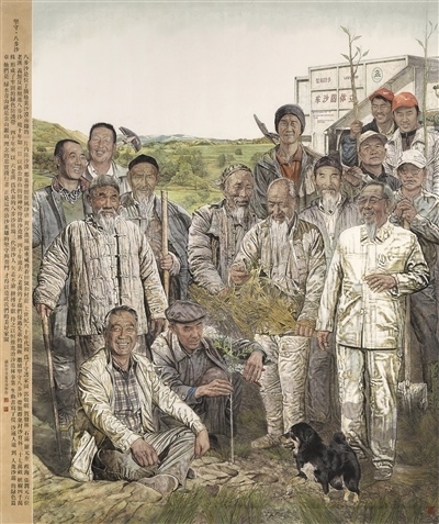 “三北”工程背后,是動(dòng)人的英雄故事。寧夏“治沙英雄”王有德、甘肅八步沙林場(chǎng)“六老漢”……無數(shù)平凡的造林人,以尺寸之功積千秋之利,成為防沙治沙的模范人物,也成為美術(shù)工作者著力塑造的英雄形象。