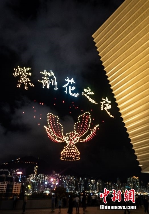 6月22日晚間,“紫荊花之夜”無(wú)人機(jī)燈光創(chuàng)意秀在香港故宮文化博物館畔的海面上空舉行,2000架無(wú)人機(jī)演繹多個(gè)與“端午節(jié)”相關(guān)的圖案,點(diǎn)亮香港夜空。
