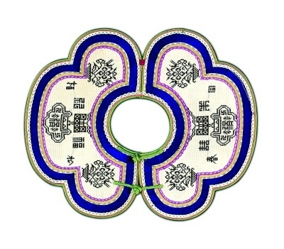 依據(jù)工藝、地域、民族的不同,織繡印染單元分為織繡、印染和少數(shù)民族工藝三類,品種豐富,工藝精美,兼顧手作與機(jī)制。在織繡中,南京云錦織造復(fù)雜,圖案華美;五彩繽紛的成都蜀錦以染色熟絲織造,質(zhì)地堅(jiān)韌;蘇州漳緞以漳絨織造,富麗華貴;蘇州緙絲則采用通經(jīng)斷緯工藝與博古圖案,極盡工巧。刺繡展品以繡有吉祥圖案的日用品為主,如山西“打子繡錢袋”繡獅子滾繡球圖案,寓意好事不到頭;蘇州“金地拉鎖繡扇套”繡孔雀開屏與鳳求凰圖案,祈愿美好愛情。藍(lán)印花布產(chǎn)地多,應(yīng)用廣,多采用吉祥圖案,既有祈愿幼兒健康成長的“虎戲五毒紋肚兜”“麒麟送子圖圍嘴”,亦有寓意平安富貴的“牡丹花瓶紋門簾”,還有“勞動生產(chǎn)”雙喜藍(lán)印花布褥面,倡導(dǎo)“女紡織家存千尺布,男耕田倉有萬石糧”。在少數(shù)民族工藝品中,“苗族刺繡花邊百褶裙”以黑色土布飾五彩裙擺,展現(xiàn)著苗族婦女“善歌舞,巧織繡”的傳統(tǒng)。