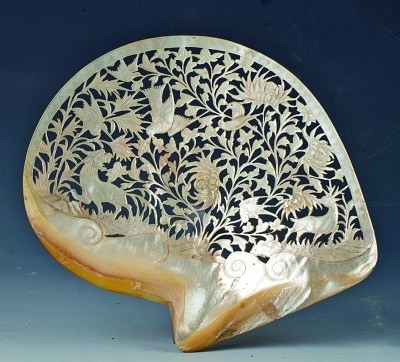 雜項(xiàng)包括景泰藍(lán)、錫器、銀器、竹編、草編、木雕、貝殼鏤雕、泥塑等多個(gè)門類,名品與新品琳瑯滿目。1951年至1952年,常沙娜在林徽因的指導(dǎo)下設(shè)計(jì)的北京景泰藍(lán)“和平鴿紋盤”“飛天紋盤”等作品,不僅富有敦煌特色,而且探索了傳統(tǒng)工藝設(shè)計(jì)的轉(zhuǎn)型之路。四川自貢名家龔玉璋的竹絲扇工藝精湛,圖像富有文人雅趣。廣州珍珠殼鏤雕成對展示,造型雅致,色澤瑩潤,工藝精細(xì),裝飾華美。來自天津、潮州等地的木雕糕模造型喜慶,寓意吉祥。江蘇無錫惠山泥人的代表作“大阿?!蔽⑿F(tuán)坐,迎祥納福。造型小巧的陜西泥哨多為黑地彩繪,形象質(zhì)樸,神情生動,上有兩個(gè)小孔,吹之可發(fā)聲。