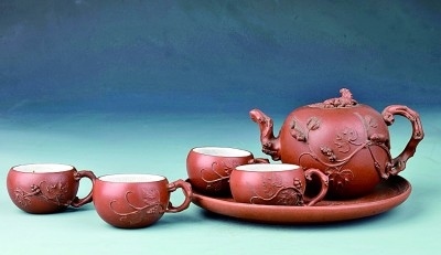 在陶瓷單元,來自全國七個(gè)產(chǎn)區(qū)的陶器、瓷器和陶瓷雕塑在材料、工藝、功能、題材、造型、裝飾等方面各具特色。江蘇宜興紫砂陶器因透氣性能優(yōu)良,以茶具、花盆聞名。清初名家陳孟瀛的“紫砂水仙盆”造型質(zhì)樸,書畫裝飾清新雅致;現(xiàn)代名家朱可心的茶具以松鼠葡萄為題材,寓意多子多福、豐收吉祥。云南建水紫陶多以不同顏色的陶泥刻填書畫,形成具有地方特色的“殘?zhí)毖b飾,文人氣息濃厚,如向逢春的“紫陶刻填殘?zhí)B紋瓶”,丁吉三制陶、馬吉生作畫、孟松題詩的“紫陶雙耳四方瓶”等。湖南銅官陶器以綠色、褐色釉為主,多為雙連調(diào)味罐、水壺等日用器皿。安徽界首陶器的剔地留花工藝和武戲“刀馬人”裝飾獨(dú)具特色,名家以盧山義為代表。江西景德鎮(zhèn)是傳統(tǒng)瓷區(qū),產(chǎn)量大,行銷廣,青瓷、青花、古彩等品種豐富,彩繪、浮雕等工藝精湛,如“青花龍紋盤”以鏤雕透光的“玲瓏眼”工藝為特色;“青瓷浮雕一品當(dāng)朝紋盤”繪仙鶴立于潮頭,寓意聲名顯赫;名家王步的“青花白菜圖盤”以中國傳統(tǒng)繪畫兼工帶寫的手法繪制白菜形象,既富生活雅趣,又寓發(fā)財(cái)之意。江西美術(shù)工作室則以現(xiàn)實(shí)題材、寫實(shí)風(fēng)格為特色,曾龍升創(chuàng)作的瓷塑“牧童牛上比英雄”傳遞出“老幼互相忙生產(chǎn),要為祖國立大功”的時(shí)代之聲。福建德化白瓷以瓷塑見長,傳統(tǒng)題材為主。廣東石灣陶器則以陶塑見長,題材多具自然情趣與生活氣息,亦有表現(xiàn)時(shí)代題材的作品。