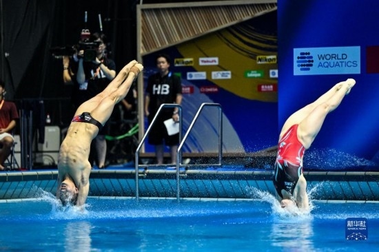 當(dāng)日,在日本福岡舉行的2023年世界游泳錦標(biāo)賽跳水混合團(tuán)體決賽中,中國(guó)隊(duì)以489.65分奪冠。