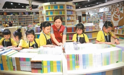 7月18日,來(lái)自重慶市沙坪壩區(qū)的20名小學(xué)生走進(jìn)重慶新華書(shū)店沙坪壩書(shū)城,化身“小小圖書(shū)管理員”,參加勞動(dòng)職業(yè)體驗(yàn)活動(dòng)。趙杰昌攝(人民圖片)