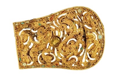 東漢嵌松石鏤空龍紋金帶扣。安徽楚文化博物館供圖