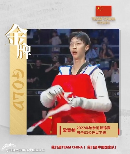 2022年,梁育帥在瓜達拉哈拉世錦賽中奪得一枚金牌(圖片來源TEAMCHINA中國國家隊微博)