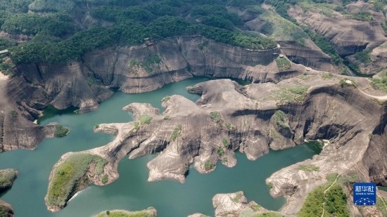 今年暑期,位于湖南省郴州市蘇仙區(qū)的高椅嶺景區(qū)迎來大量游客。高椅嶺有著罕見的丹霞地貌景觀,山頭渾圓四壁陡峭,碧水環(huán)繞風景絢麗。