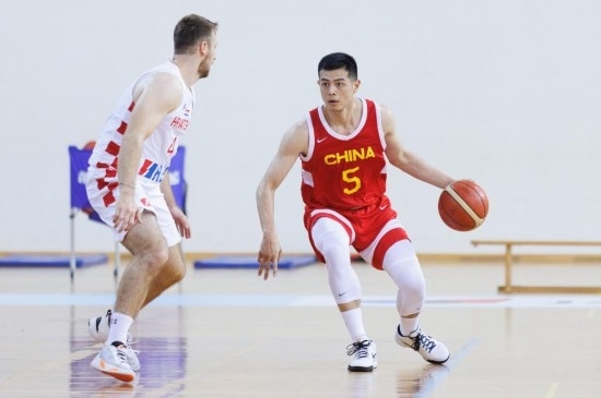 7月15日,在克羅地亞奧帕蒂亞舉行的一場男子籃球友誼賽,中國隊球員方碩(右)在比賽中運球。新華社發(fā)(內(nèi)爾·帕夫萊蒂奇攝)