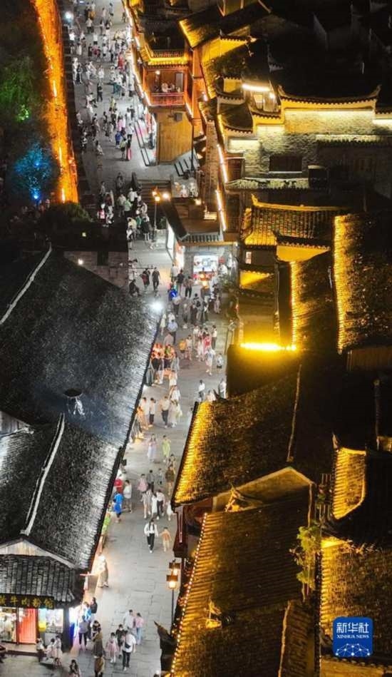 湖南省湘西土家族苗族自治州鳳凰古城持續(xù)推進(jìn)旅游環(huán)境提質(zhì)升級(jí),規(guī)范旅游市場(chǎng),完善旅游服務(wù)設(shè)施。每到夜晚,鳳凰古城沱江兩岸燈光璀璨,美景如畫,吸引眾多游客前來感受“夜鳳凰”的獨(dú)特魅力。