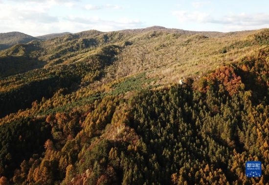 這是10月2日拍攝的黑龍江省海林市的五花山景觀(無人機照片)。