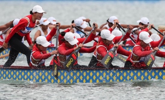 當天,溫州氣溫較前兩個比賽日有所降低,賽道上略有逆風。小組賽階段,中國男、女隊均位列小組第一,直接進入決賽。而未能直接晉級決賽的隊伍,要經(jīng)過半決賽比拼,這對于龍舟長距離項目來說,隊員體力將經(jīng)受考驗。