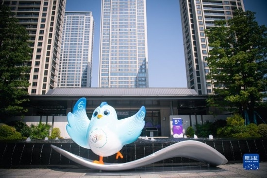 10月16日,杭州亞殘運(yùn)會(huì)吉祥物“飛飛”在開村儀式上。新華社記者 江漢 攝