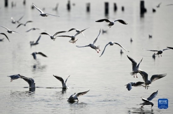 初冬時節(jié),天津市迎來候鳥遷徙高峰期,不少海鷗從寒冷的西伯利亞遷徙到濱海新區(qū)老碼頭附近的海河岸邊越冬,吸引游人前往觀賞。