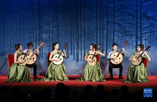12月3日,來(lái)自中央音樂(lè)學(xué)院的演奏者在演奏阮重奏《品》。