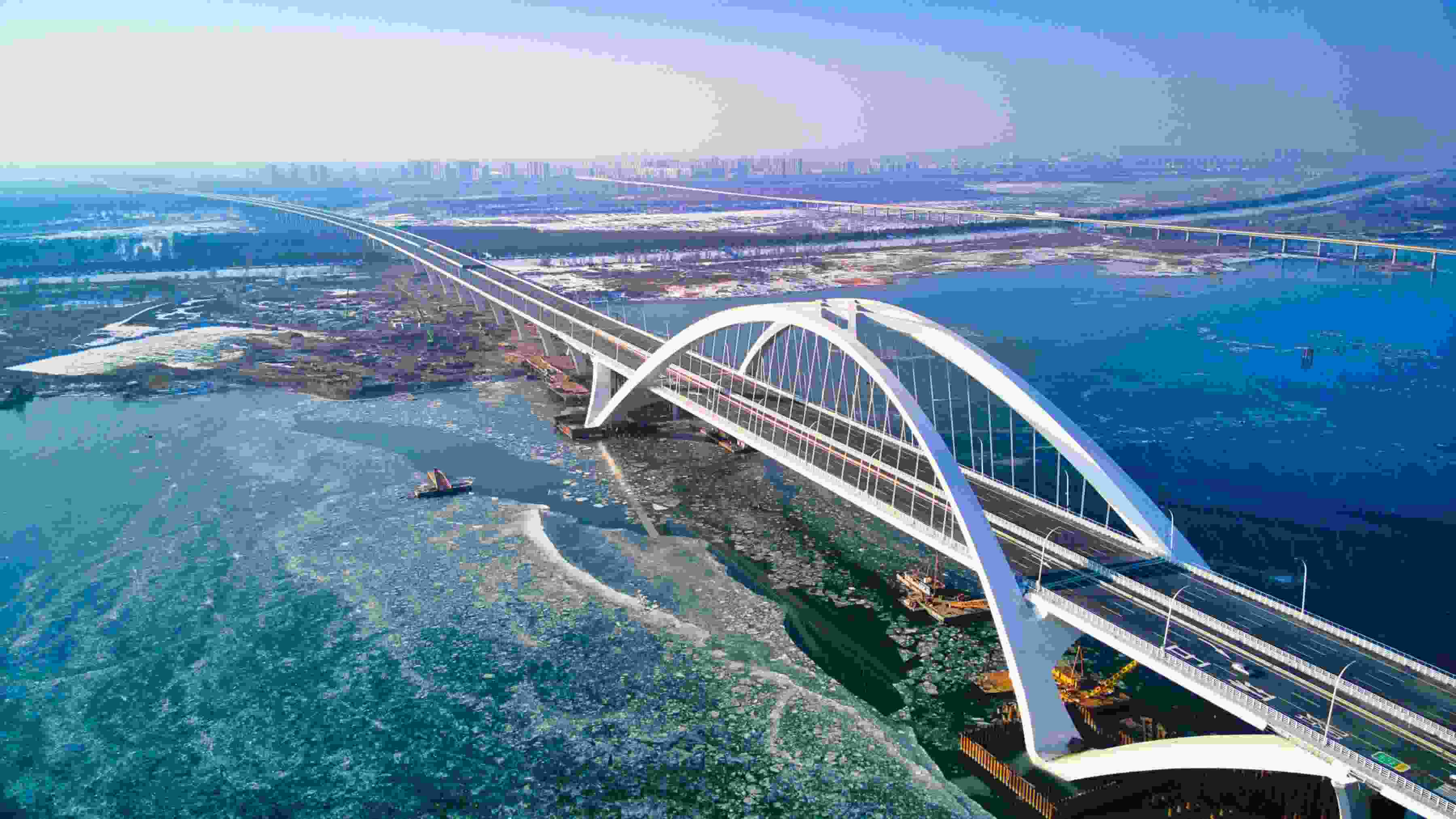 作為京雄高速全線重難點和控制性工程,京雄大橋已于2023年6月17日實現(xiàn)合龍,刷新北京橋梁單跨跨度紀錄。橋梁采用飛燕式拱橋結構,拱頂以“中國結”造型的風撐連接,寓意北京與雄安兩座城市緊密聯(lián)系、協(xié)同發(fā)展。
